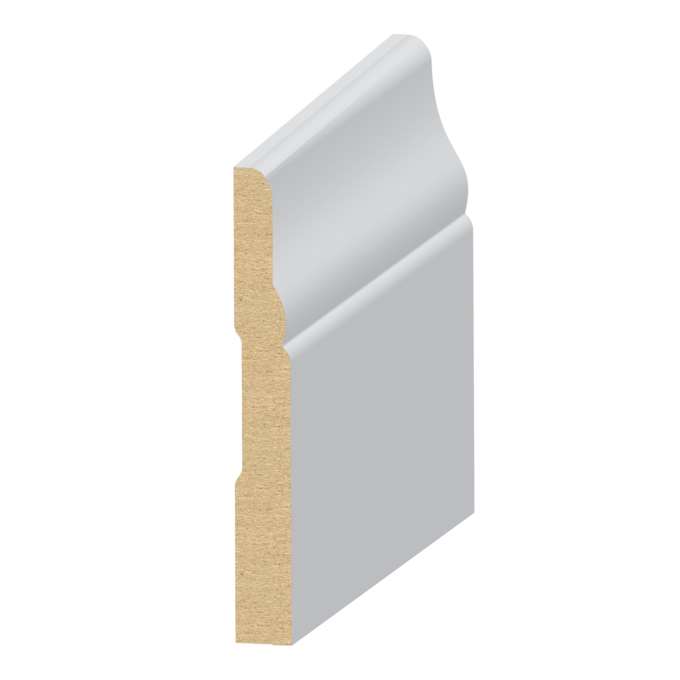 MDF Baseboard 7/16" x 3-1/2" Primed and ready to be painted.